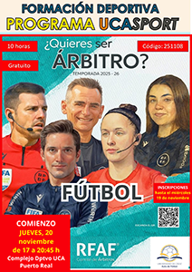 Charla formativa “El árbitro de fútbol desde la perspectiva del entrenador”Plazo de inscripción: Hasta el jueves 12 de septiembre de 2024Formulario de inscripción (Plazo de inscripción finalizado) |