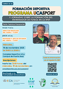 Clinic de entrenadores de fútbol playa27 y 28 de diciembre en Hotel Bahía Sur (San Fernando) 5 plazas gratuitas Inscripciones en orden de llegada enviando un correo a webinardeportes@uca.es hasta el lunes 23 de diciembre a las 12:30 horas |