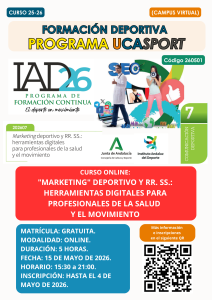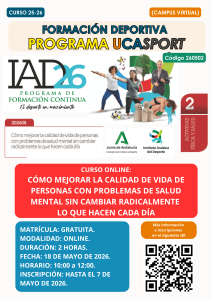 WEBINAR “Juego limpio”Impartido por Rosario Navarro y Juan Carlos Gálves (Técnicos Área de Deportes)Plazo de inscripción: Hasta las 12:00 horas del lunes 20 de enero de 2025Modelo funcionamiento UCASPORT Documento adicional explicativo