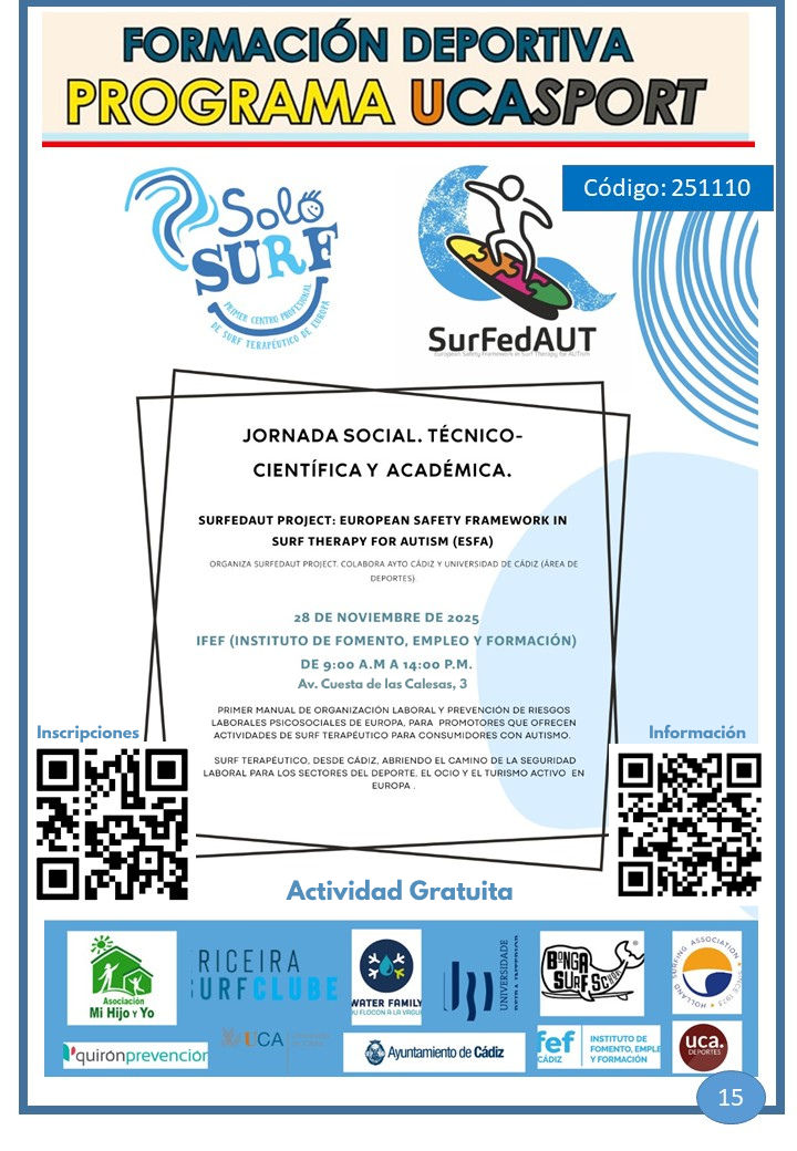 MAYOXII Curso UCASport Surf y Diversidad FuncionalPlazo de inscripción: Hasta las 14:00 h del jueves 16 de mayo de 2024 |