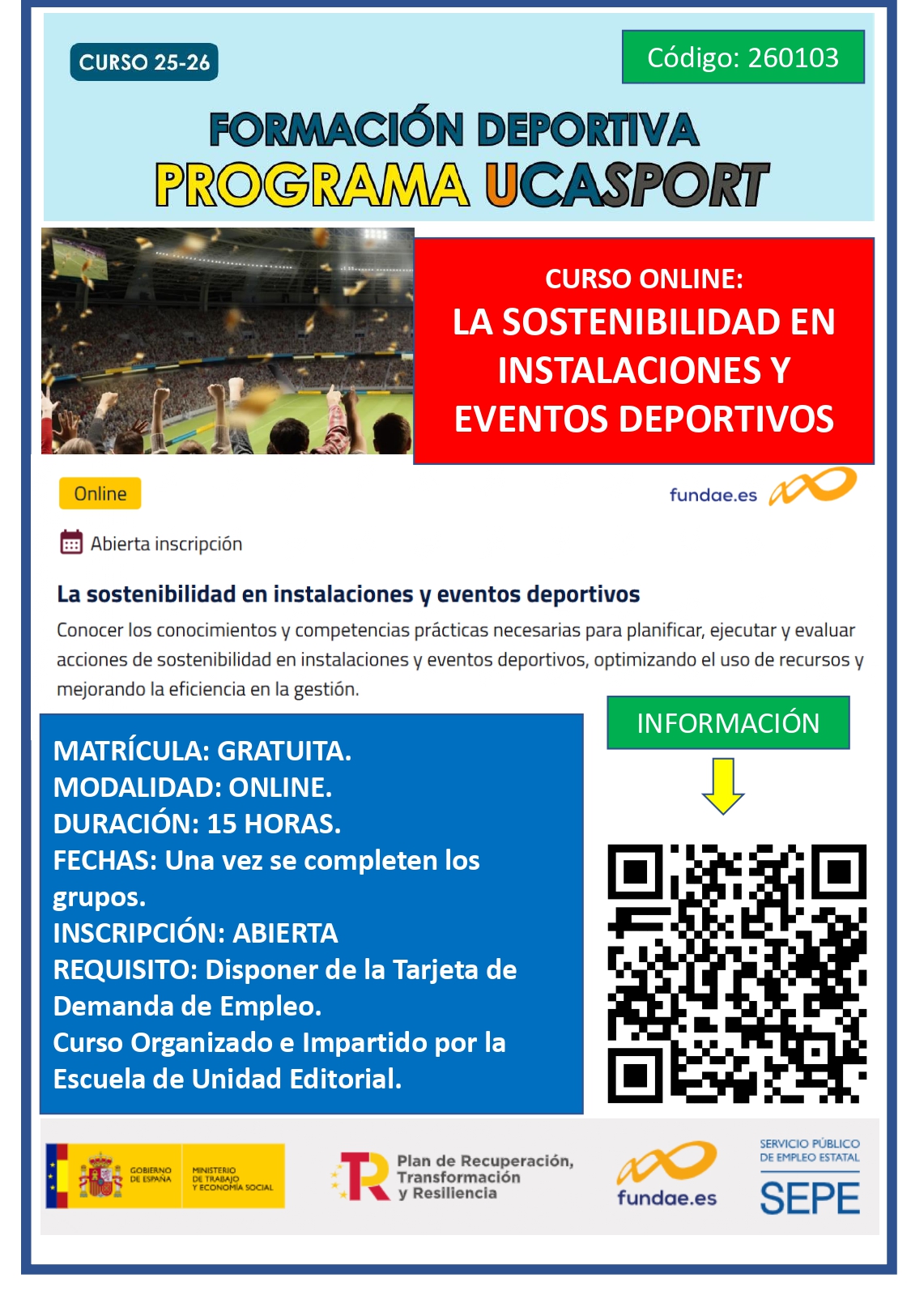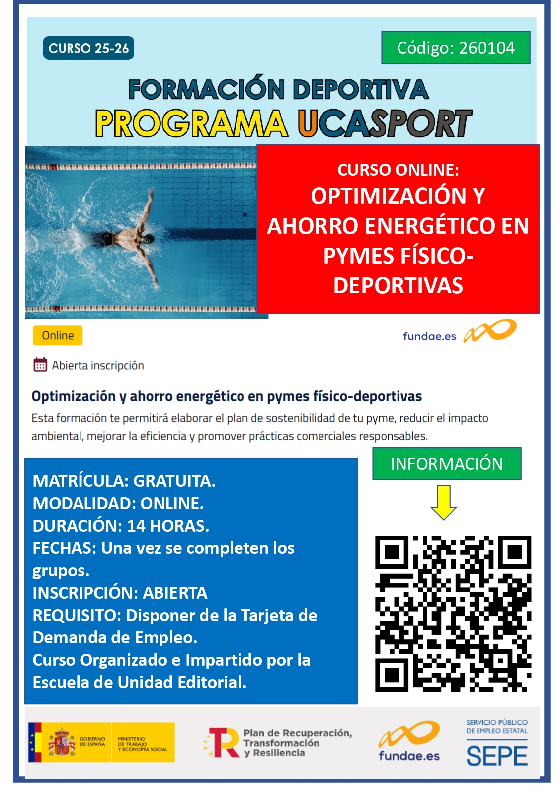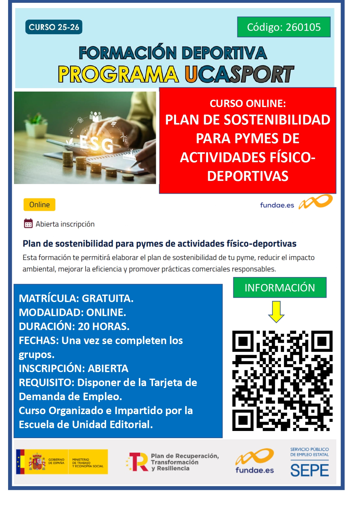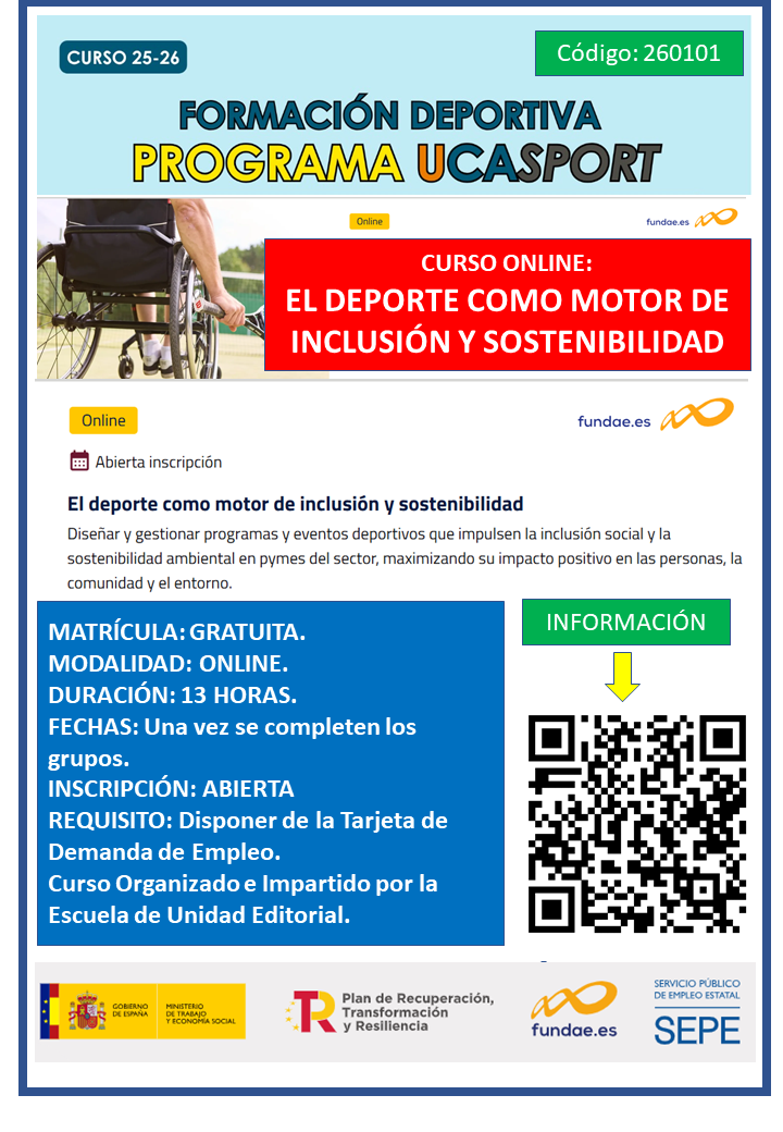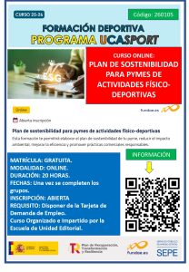 WEBINAR “Juego limpio”Impartido por Rosario Navarro y Juan Carlos Gálves (Técnicos Área de Deportes)Plazo de inscripción: Hasta las 12:00 horas del lunes 20 de enero de 2025Modelo funcionamiento UCASPORT Documento adicional explicativo